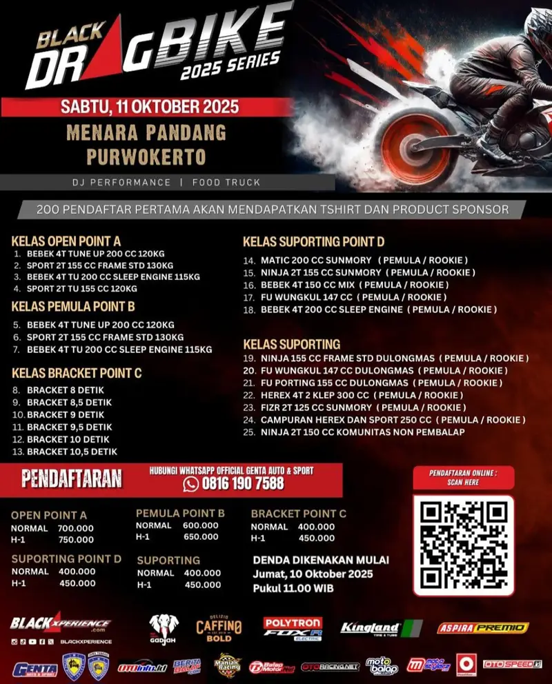 KabarOto.id – Event balap drag paling ditunggu-tunggu, Black Drag Bike 2025, kembali menyapa penggemar kecepatan, kali ini hadir di Sirkuit Non Permanen (NP) Menara Pandang, Purwokerto. Gelaran ini tidak hanya sekadar adu cepat di lintasan, tetapi juga membawa konsep “sportainment” perpaduan antara sport dan entertainment yang kini makin digandrungi.
