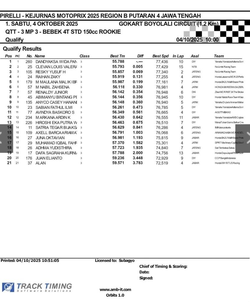 Dengan catatan waktu yang tajam dan setelan motor yang pas, peluang Dandy untuk mengamankan podium tertinggi terbuka lebar. Tim Yamaha Aditama pun memastikan semua persiapan berjalan sempurna, mulai dari setup suspensi hingga strategi balap.