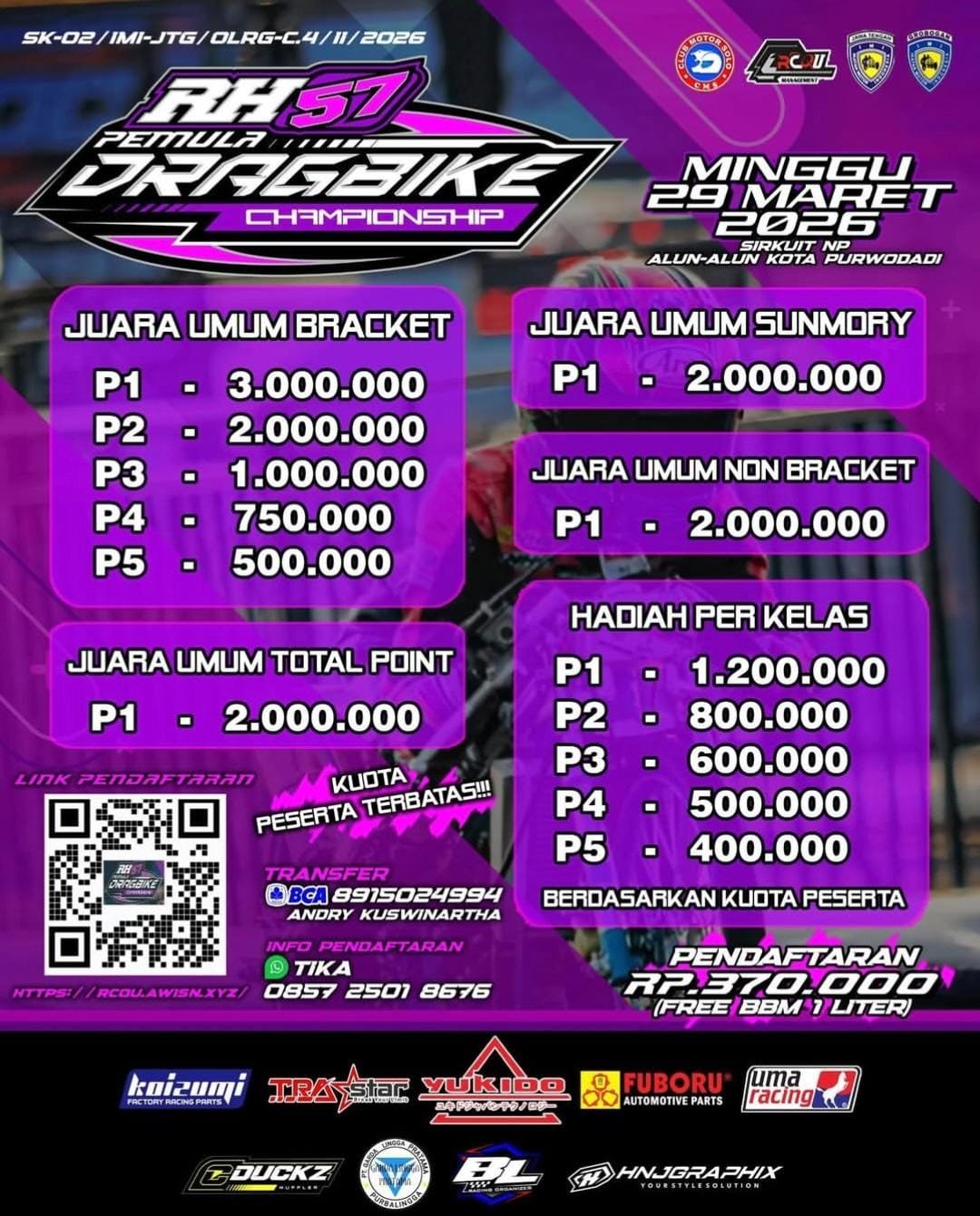 Habis Lebaran Gaspol! RH57 Pemula Dragbike Championship 2026 Siap Ramaikan Purwodadi, Catat Tanggalnya!