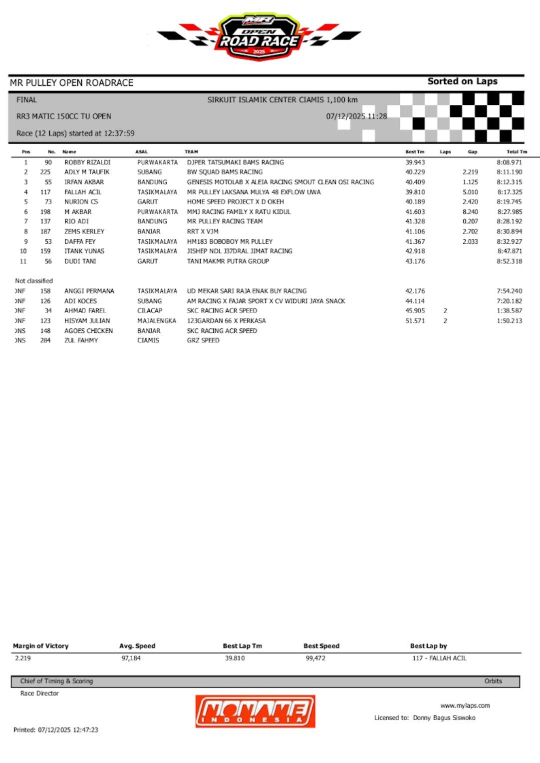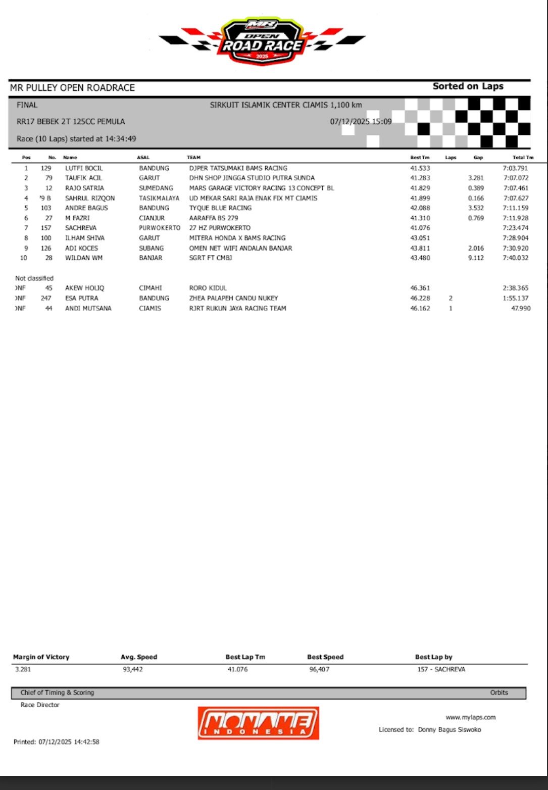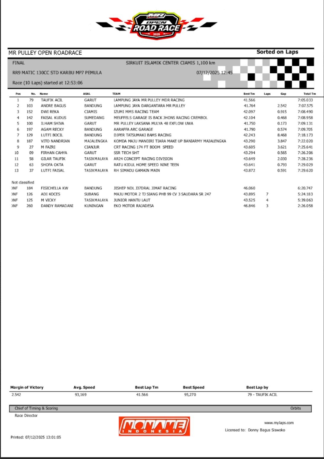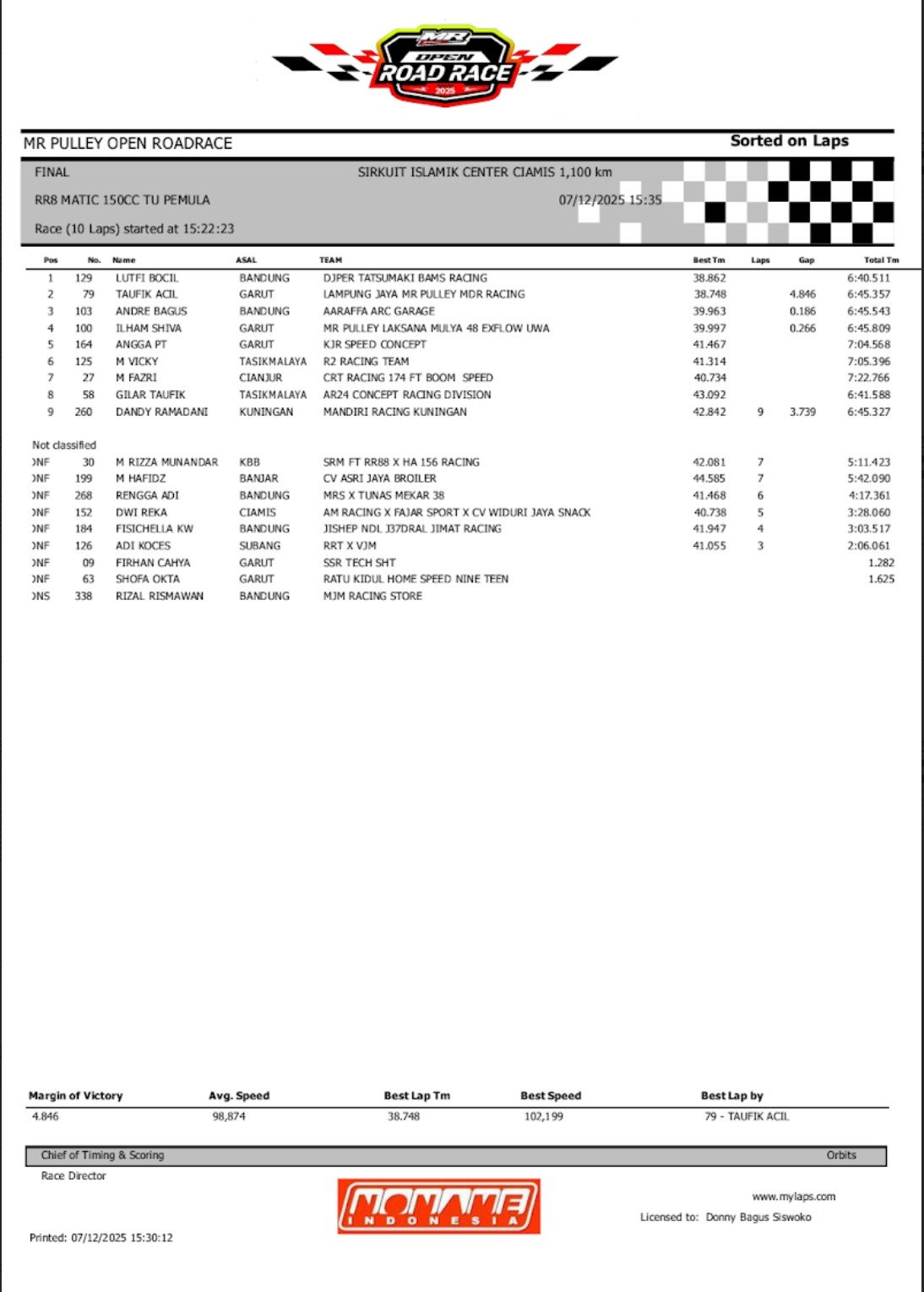 Hasil Final MR Pulley Open Road Race di Sirkuit Islamic Center Ciamis