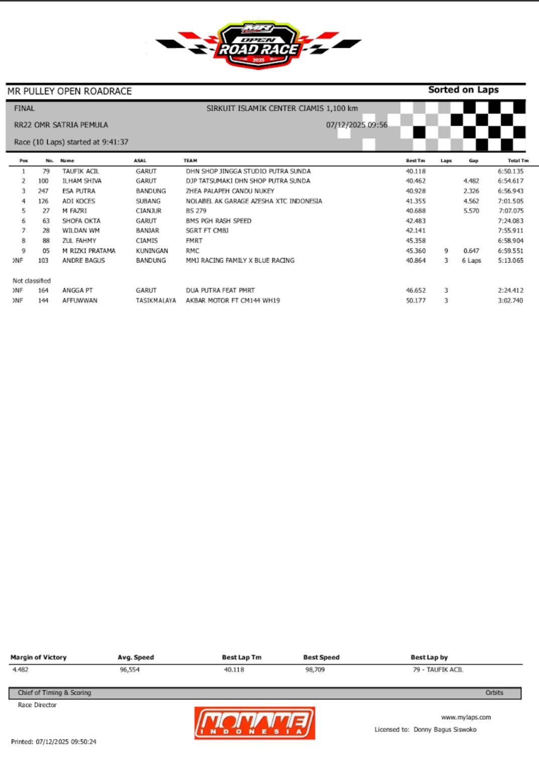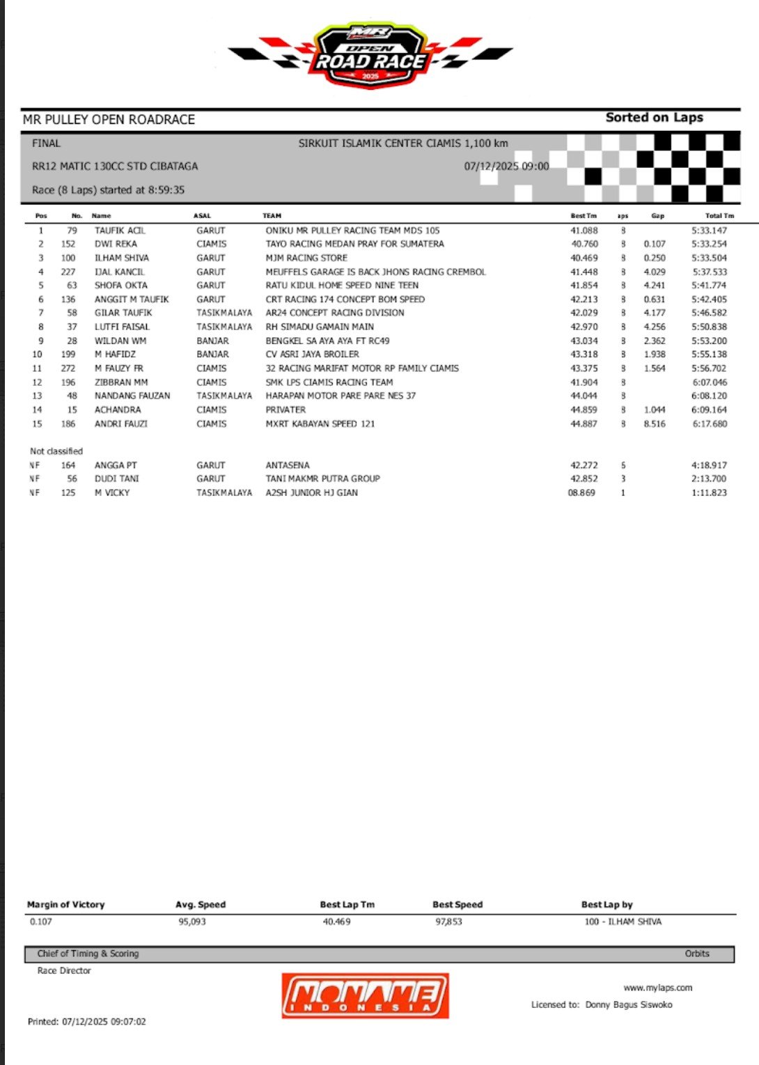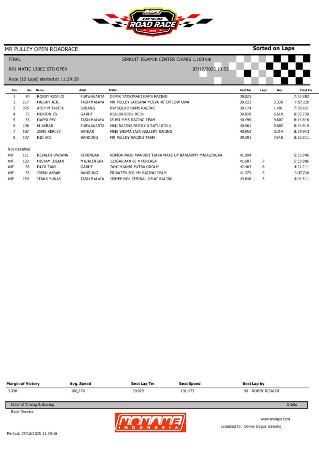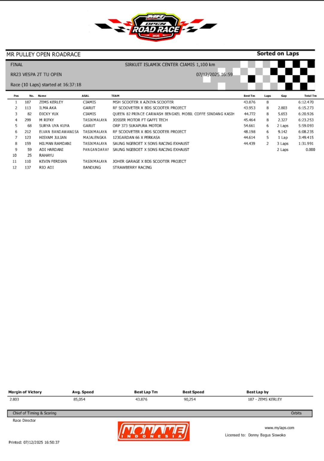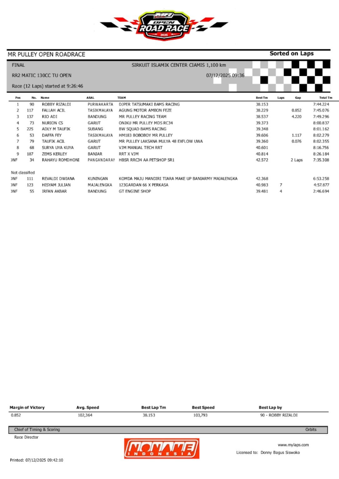 Hasil Final MR Pulley Open Road Race di Sirkuit Islamic Center Ciamis