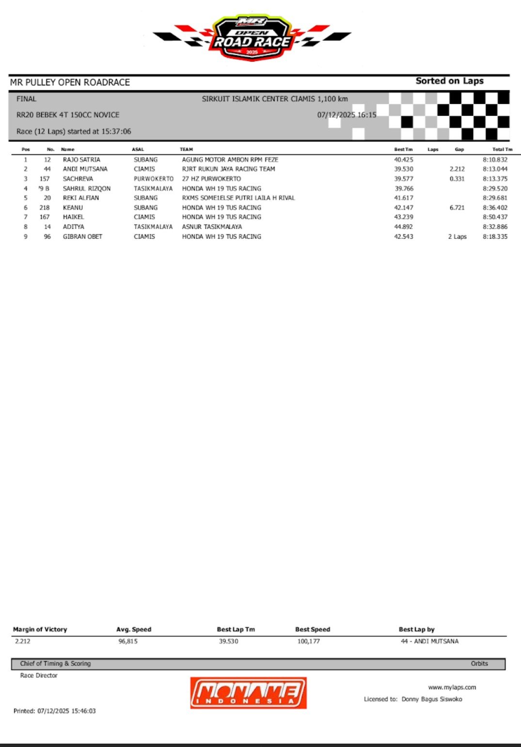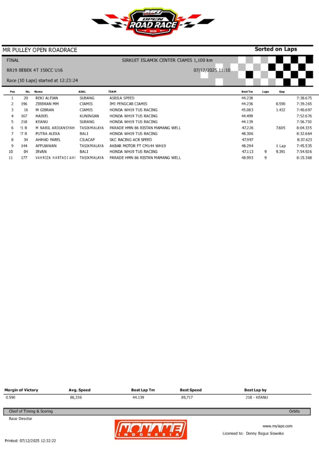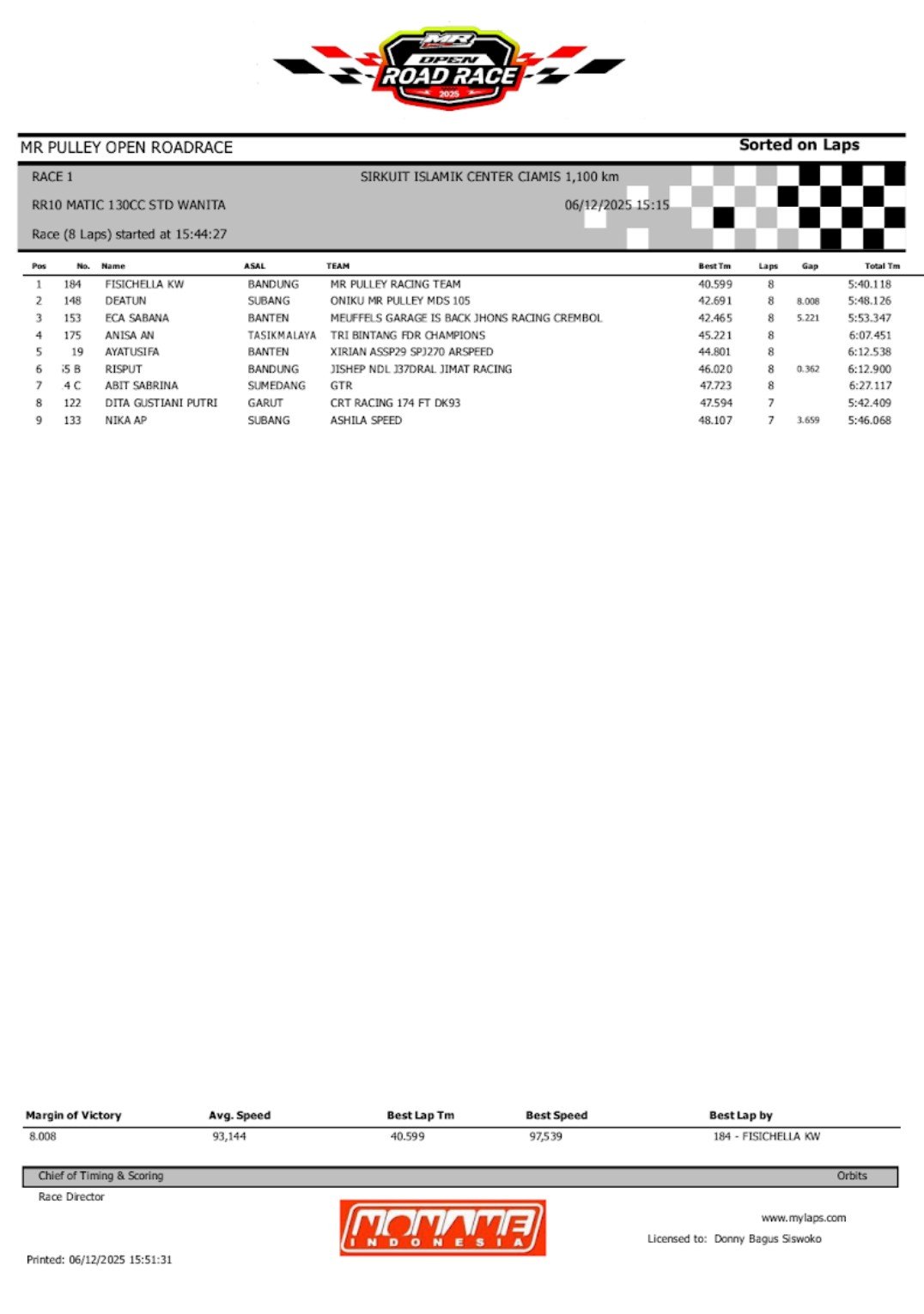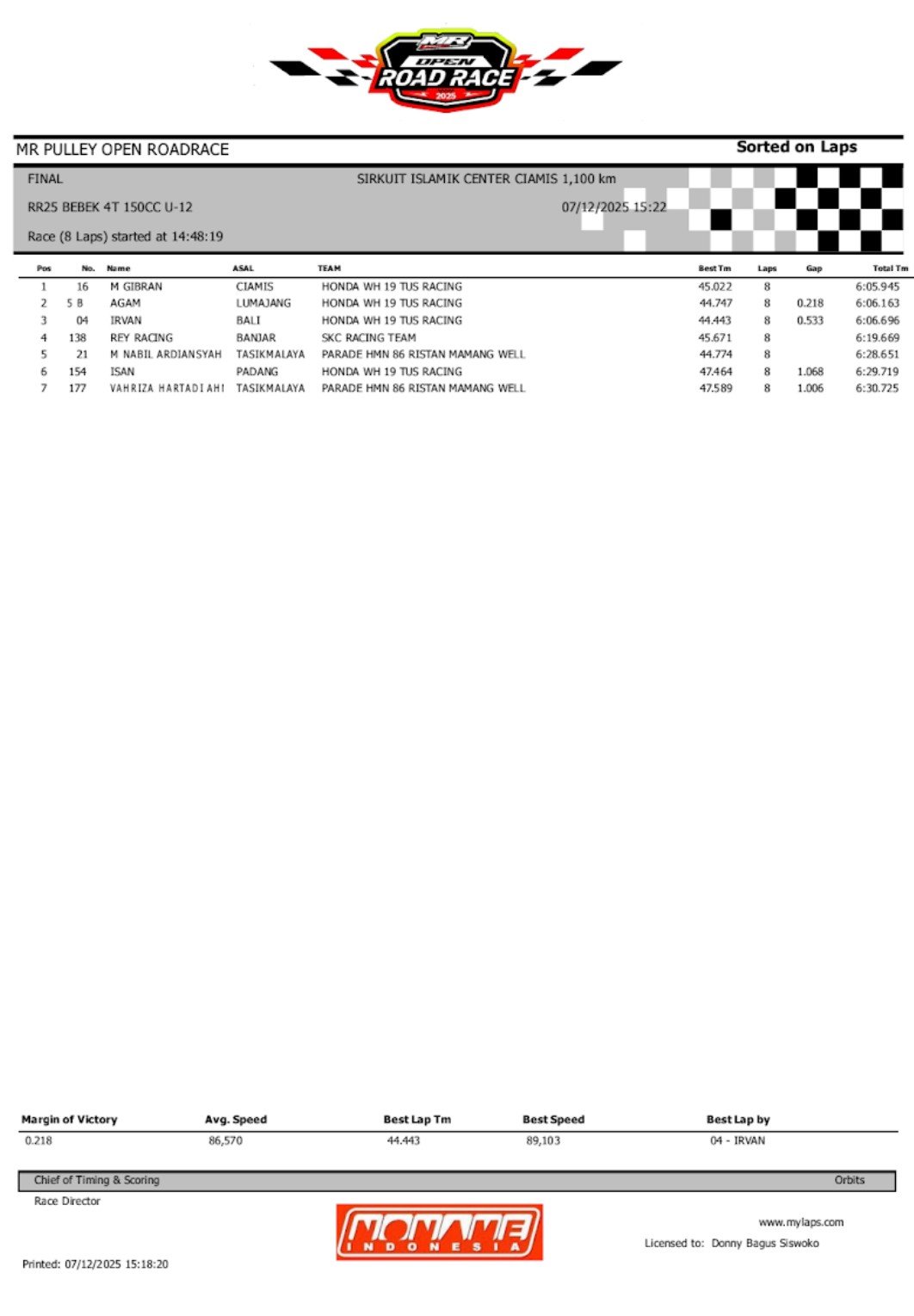 Hasil Final MR Pulley Open Road Race di Sirkuit Islamic Center Ciamis