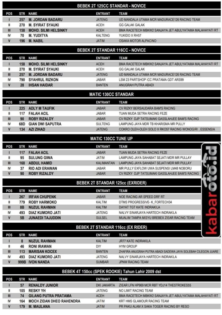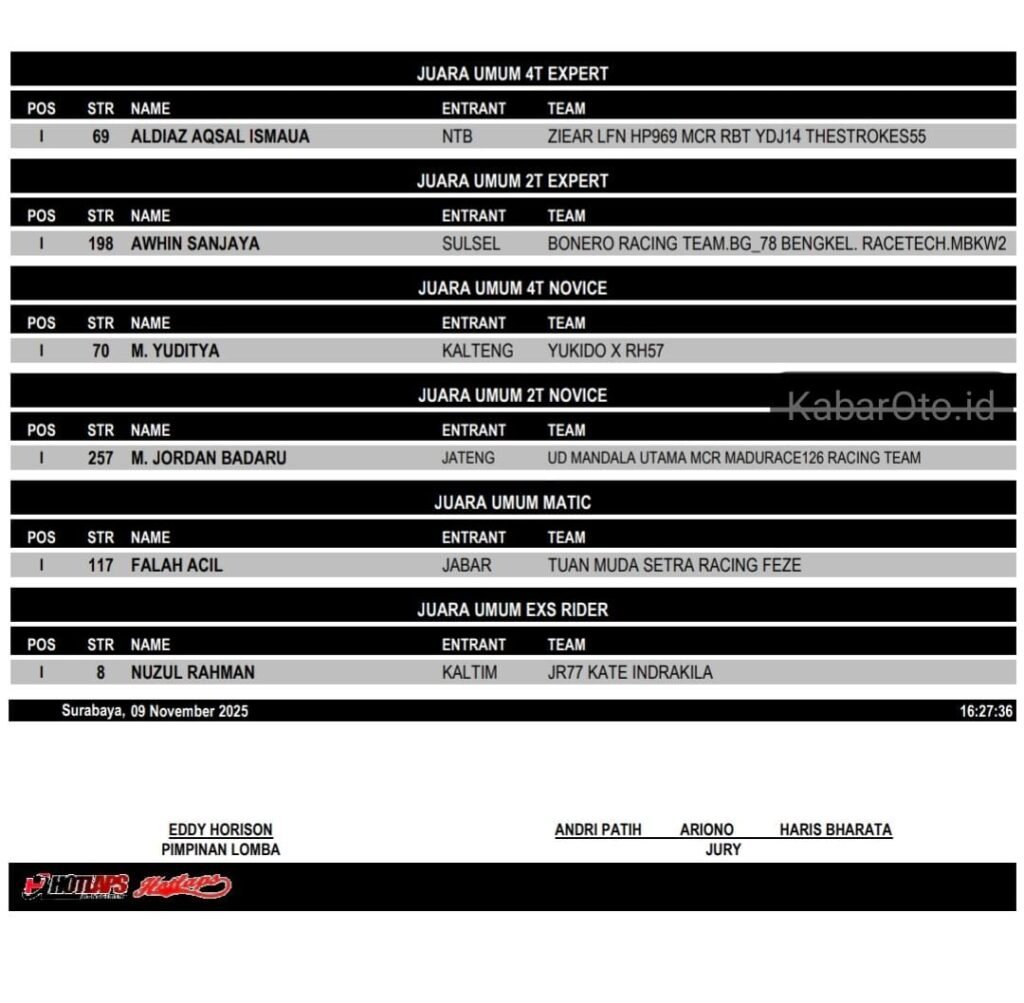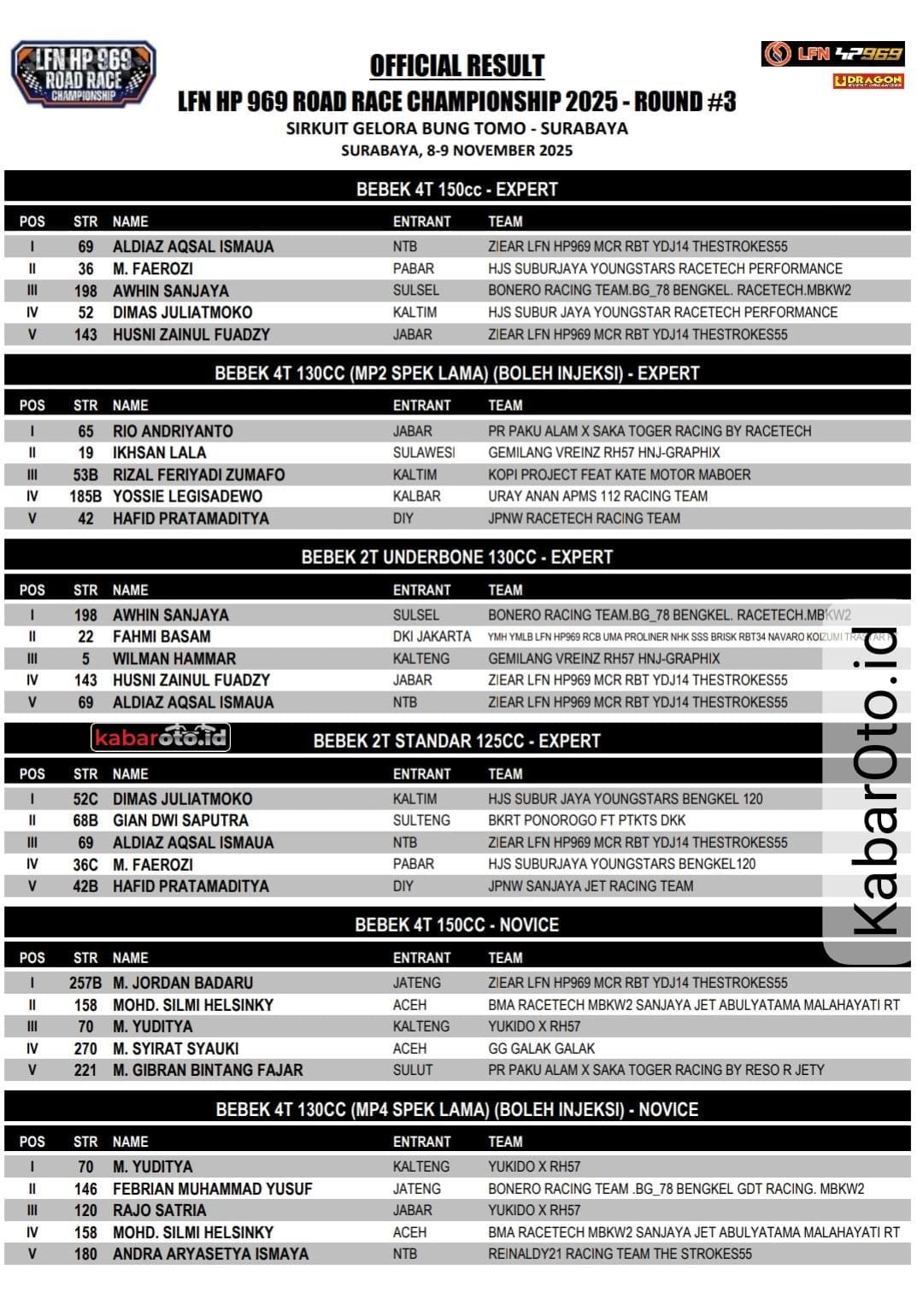 Hasil Kejuaraan Final LFN HP969 Road Race Championship 2025, Surabaya