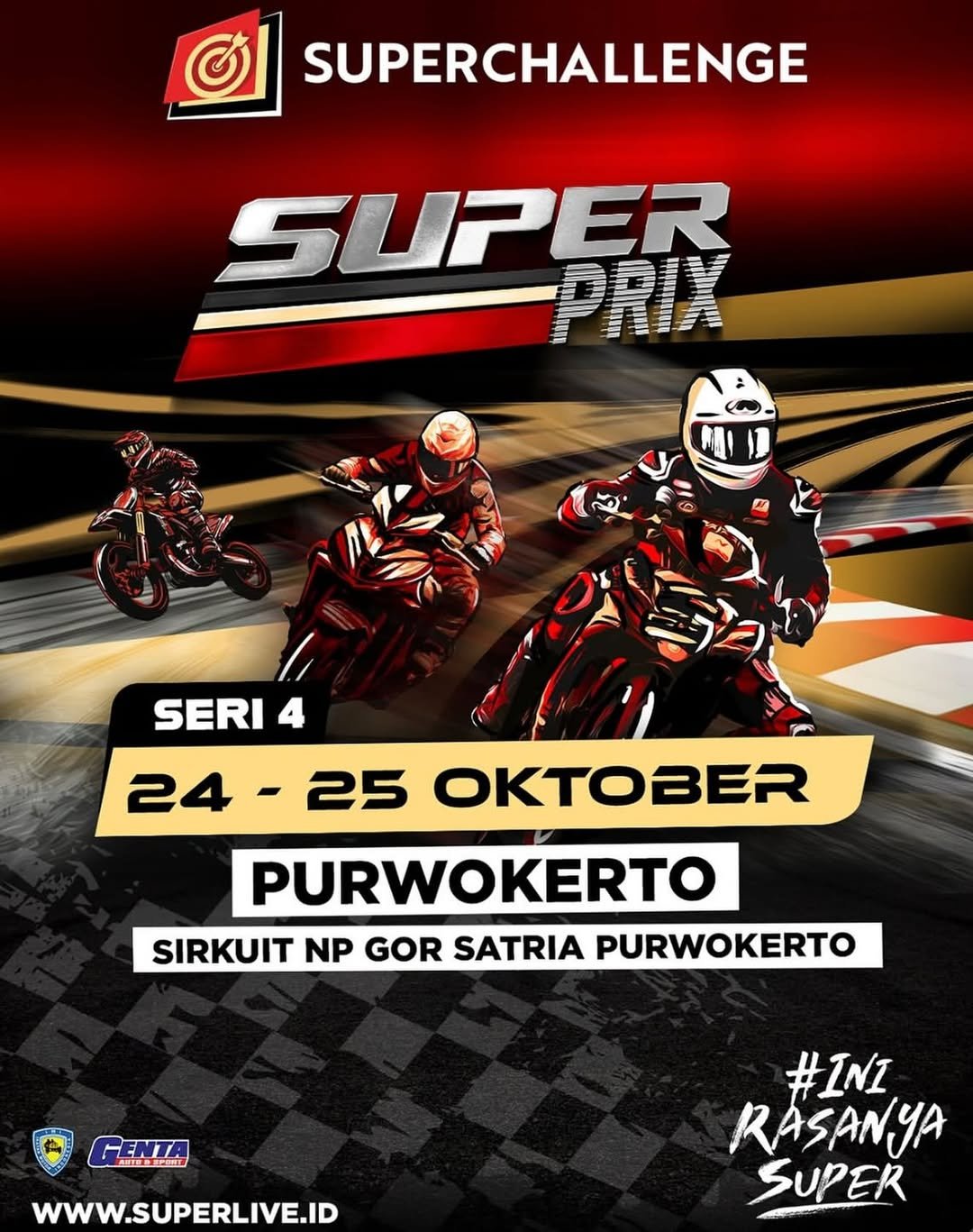KABAR OTO – Gelaran Super Prix 2025 kembali berlanjut! Kali ini, Seri 4 siap menggetarkan Sirkuit NP GOR Satria Purwokerto, salah satu lintasan legendaris di Jawa Tengah yang selalu jadi saksi duel sengit antar pembalap nasional.